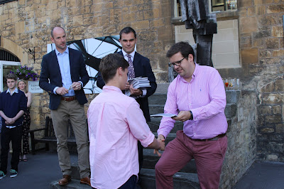Charlie Watt's receiving his leavers book from Ben Howlett MP